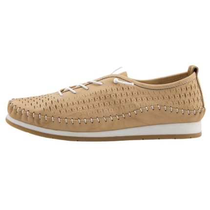Γυναικείο Δερμάτινο Ανατομικό Loafer με κορδόνι σε μπεζ χρώμα