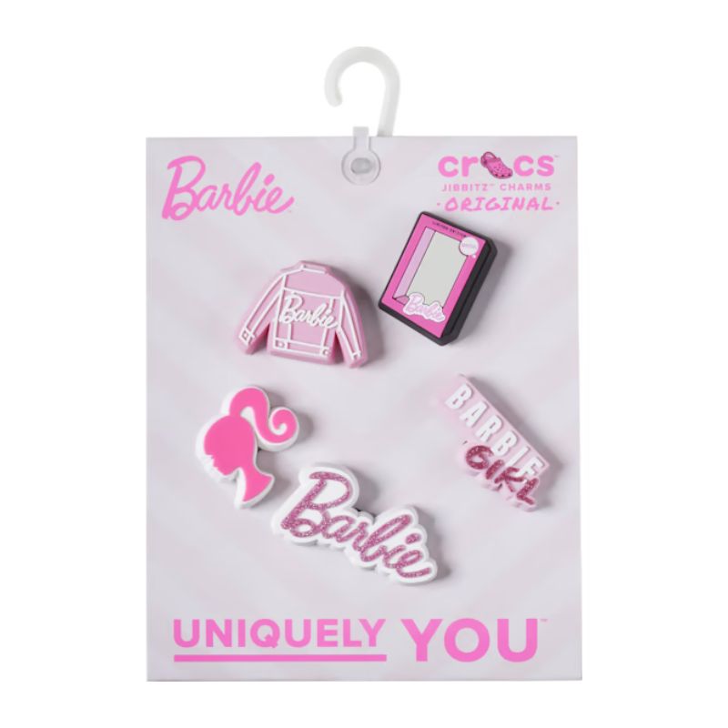 Είστε έτοιμοι για ένα “Barbiecore” look; Το σετ Barbie 5-Pack περιλαμβάνει πέντε μοναδικά διακοσμητικά Jibbitz™ που γιορτάζουν την αυτοπεποίθηση, το στυλ και τη διασκέδαση. Από το κλασικό λογότυπο της Barbie μέχρι τα εμβληματικά αξεσουάρ της, αυτά τα charms είναι σχεδιασμένα για να ταιριάζουν τέλεια στις οπές των Crocs σας, κάνοντας κάθε ζευγάρι μοναδικό.