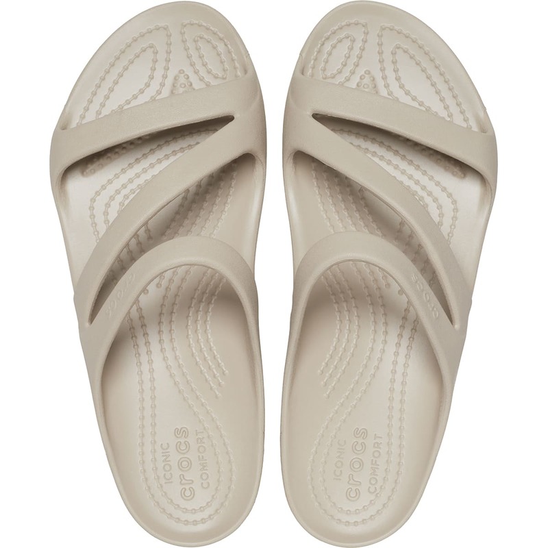 Γυναικεία πέδιλα παραλίας που αγκαλιάζουν περιμετρικά το ποδί κρατώντας το σταθερό, για άνετα βήματα στις βόλτες στην παραλία, στην πισίνα ή στην πόλη. Στο επάνω μέρος τα λουράκια σχηματίζουν Z και διαθέτουν πάτο αφρώδη Croslite. Είναι κατασκευασμένα από την εταιρία Crocs.