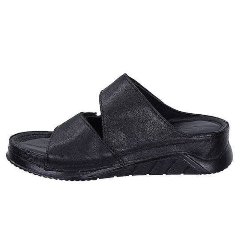 Άνεση και κομψότητα σε κάθε βήμα: Δερμάτινη μαύρη παντόφλα Safe Step 92712