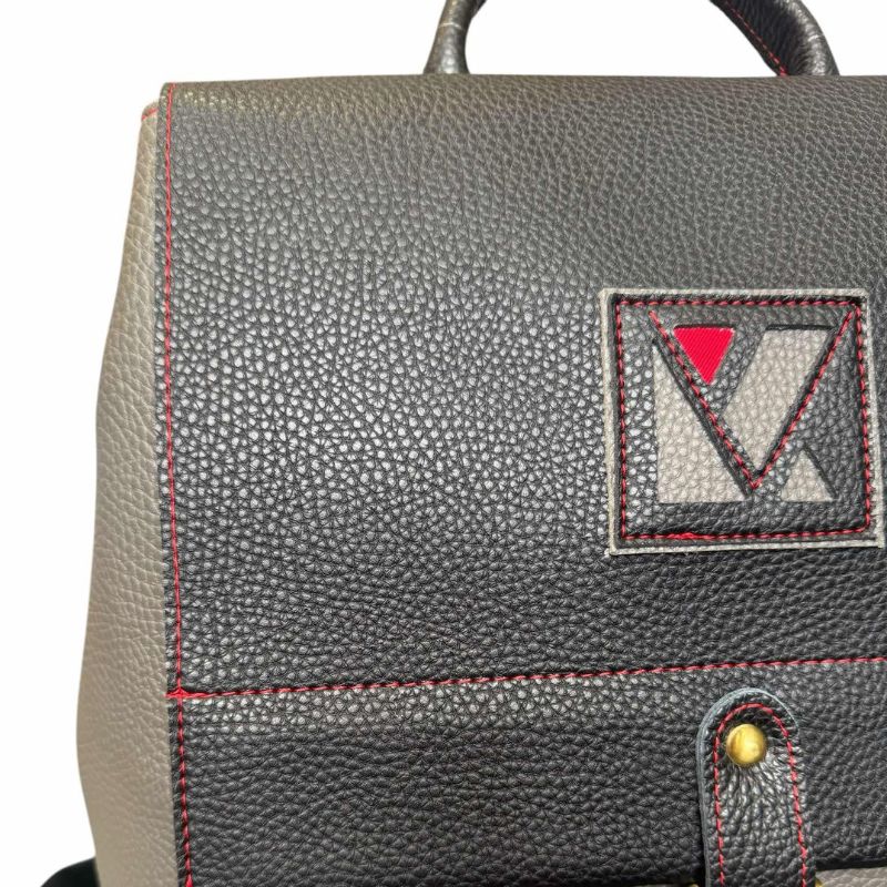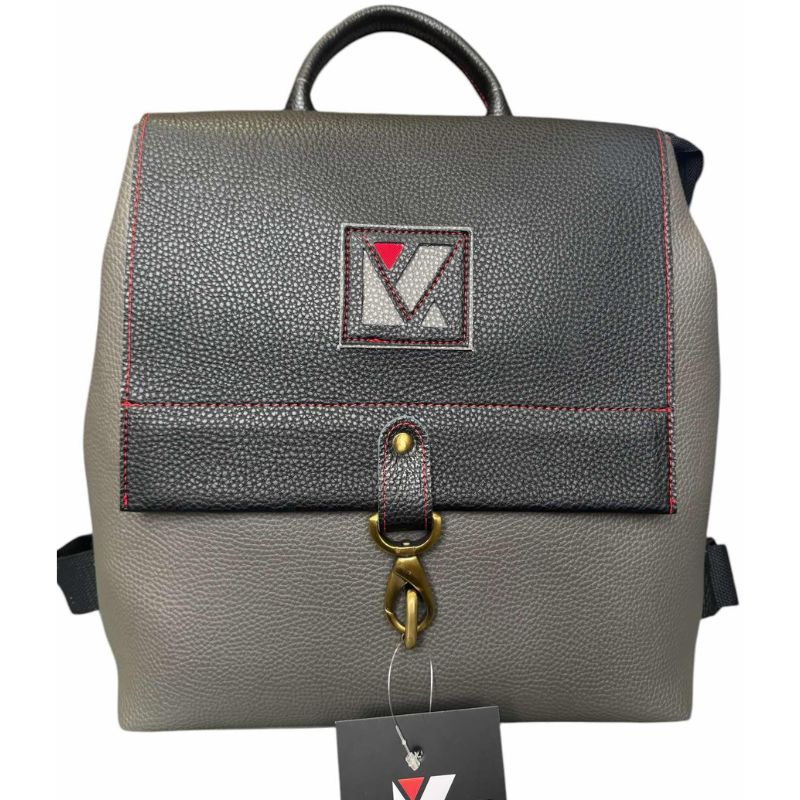 Γκρι backpack δερμάτινη με δερμάτινο μαύρο καπάκι.