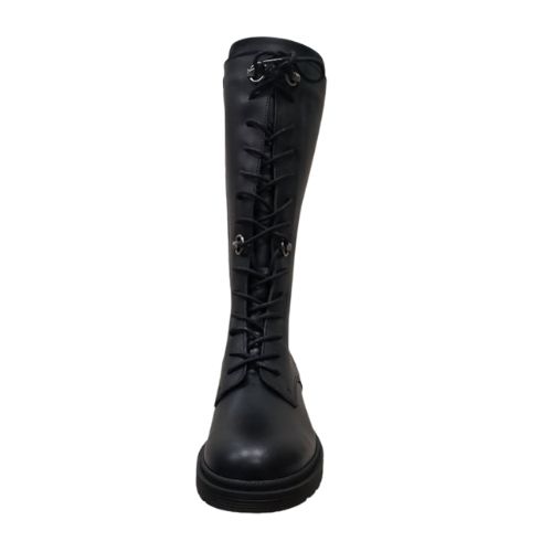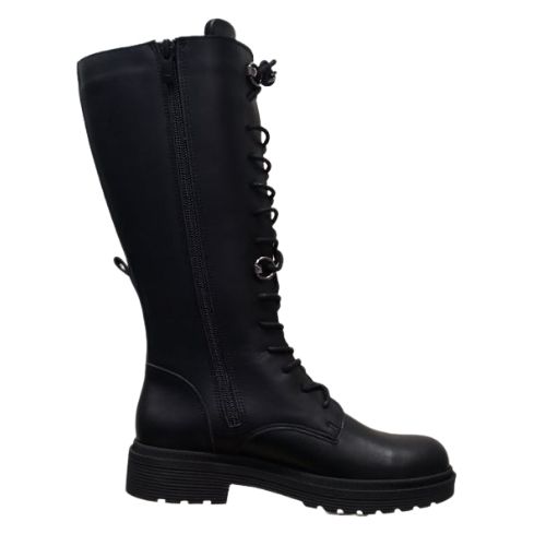 Γυναικεία μαύρη δερμάτινη μπότα.