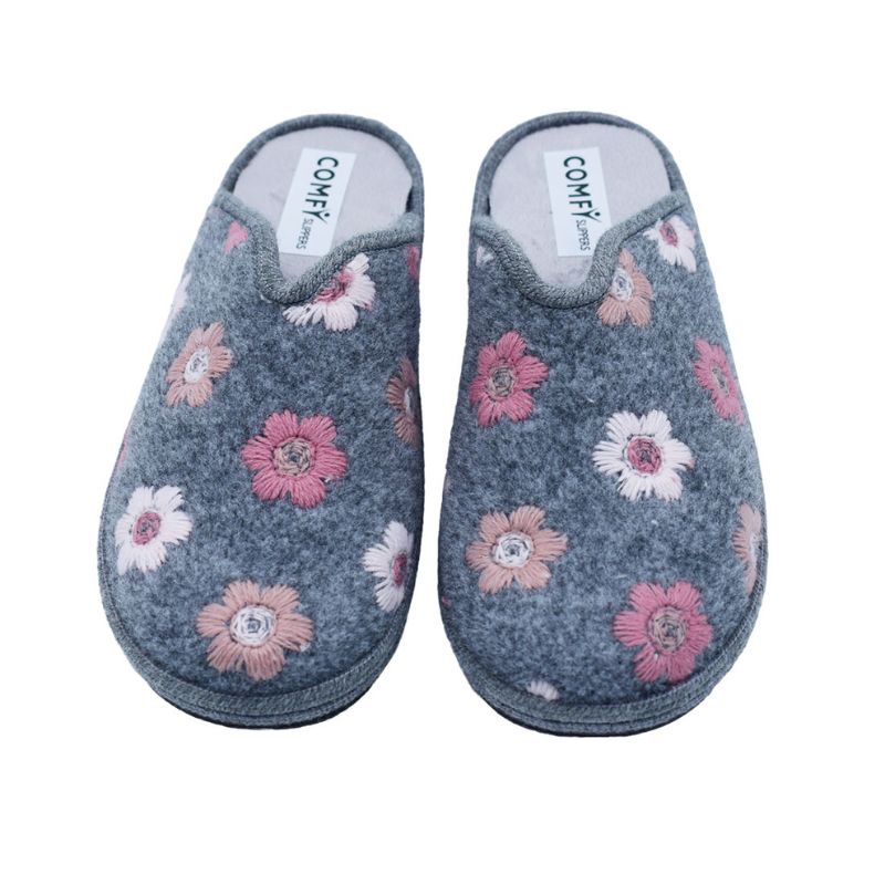 Γυναικείες τσόχινες παντόφλες ανατομικές σαμπό χειμερινές της COMFY – Γκρι