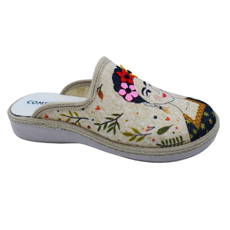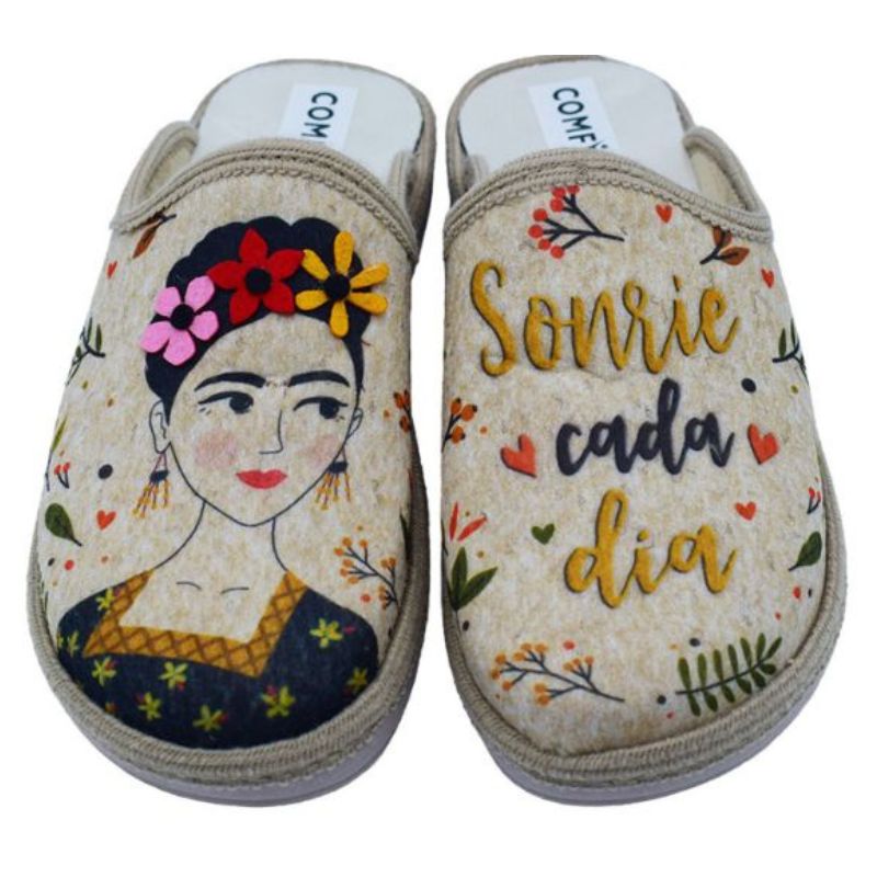 Γυναικείες τσόχινες παντόφλες Frida Cahlo ανατομικές σαμπό χειμερινές της COMFY – Μπεζ