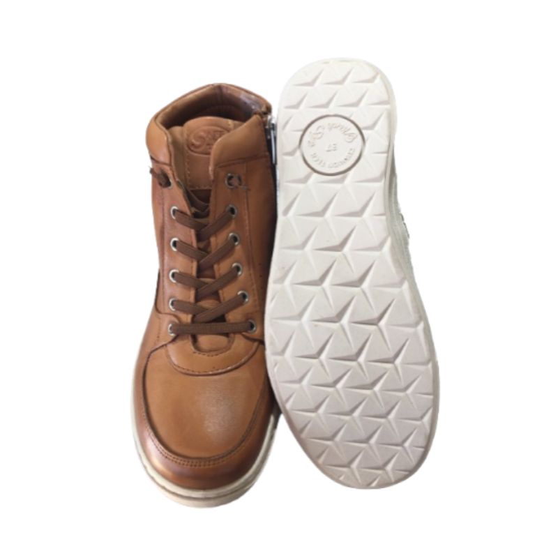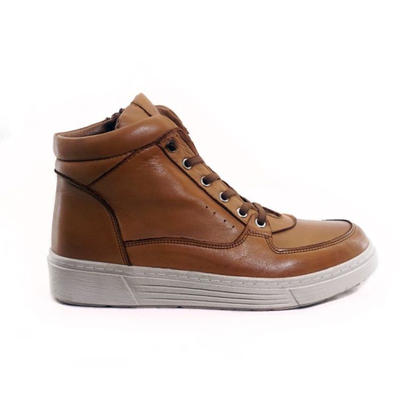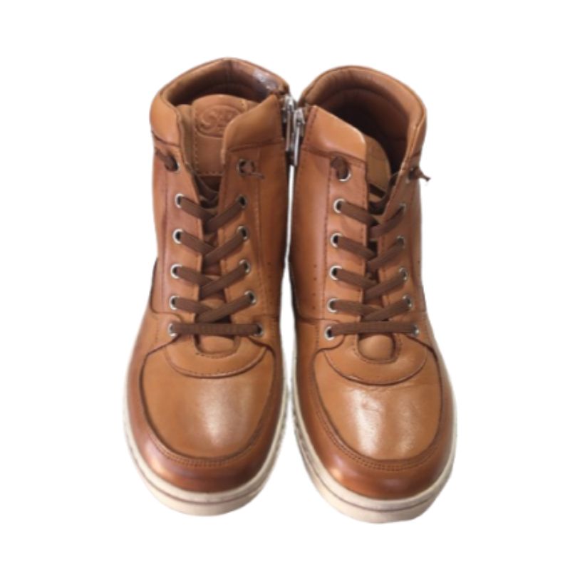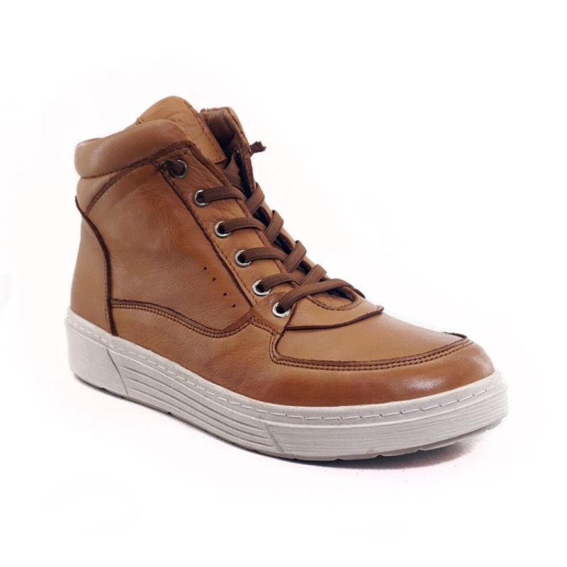 Γυναικείο Δερμάτινο Ανατομικό Μποτάκι με ελαστικά κορδόνια και φερμουάρ