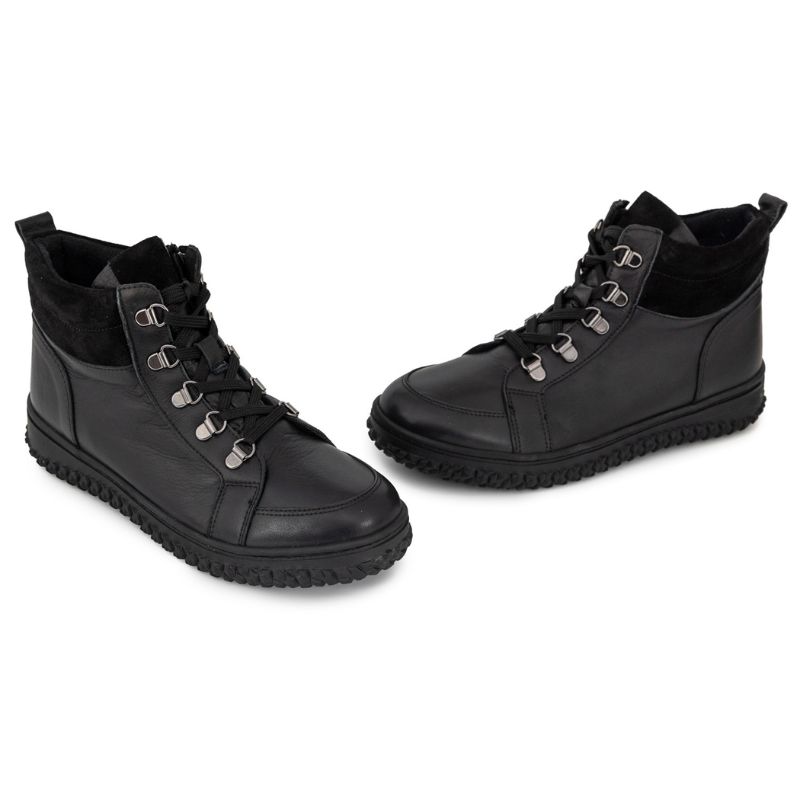 Γυναικείο Μαύρο Δερμάτινο Ανατομικό Μποτάκι Tatoo 228