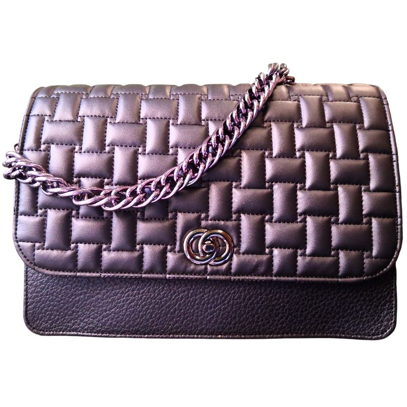 Κλασική τσάντα ώμου καπιτονέ μεσαίου μεγέθους μαύρο χρώμα