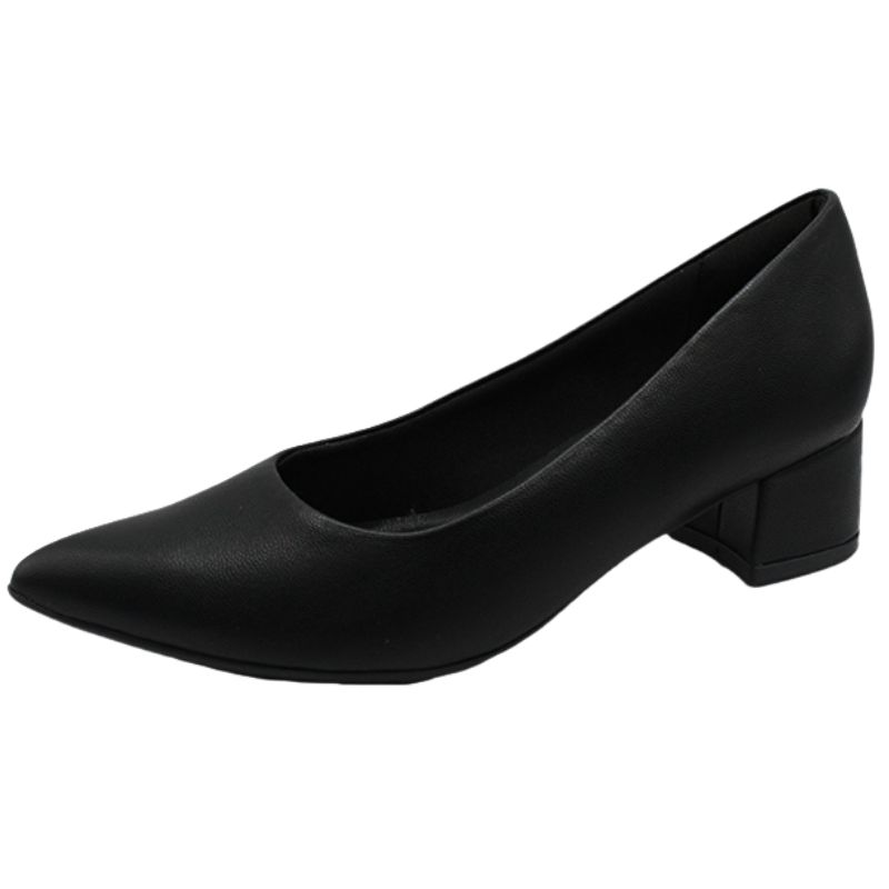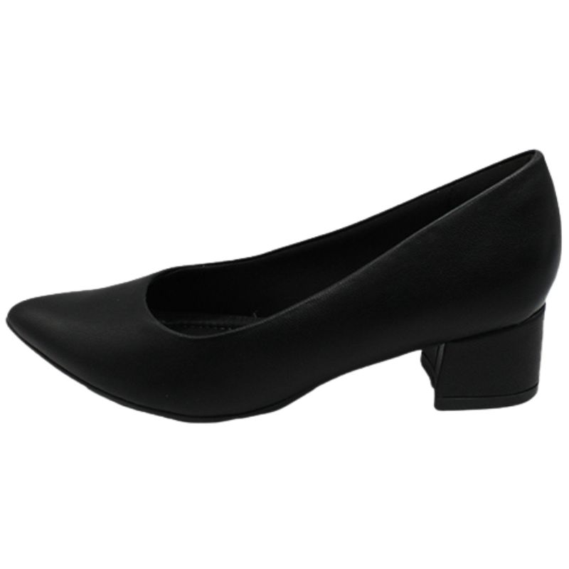 Piccadilly Δερμάτινες Μυτερές Γόβες με Χοντρό Χαμηλό Τακούνι Μαύρες