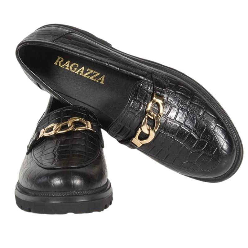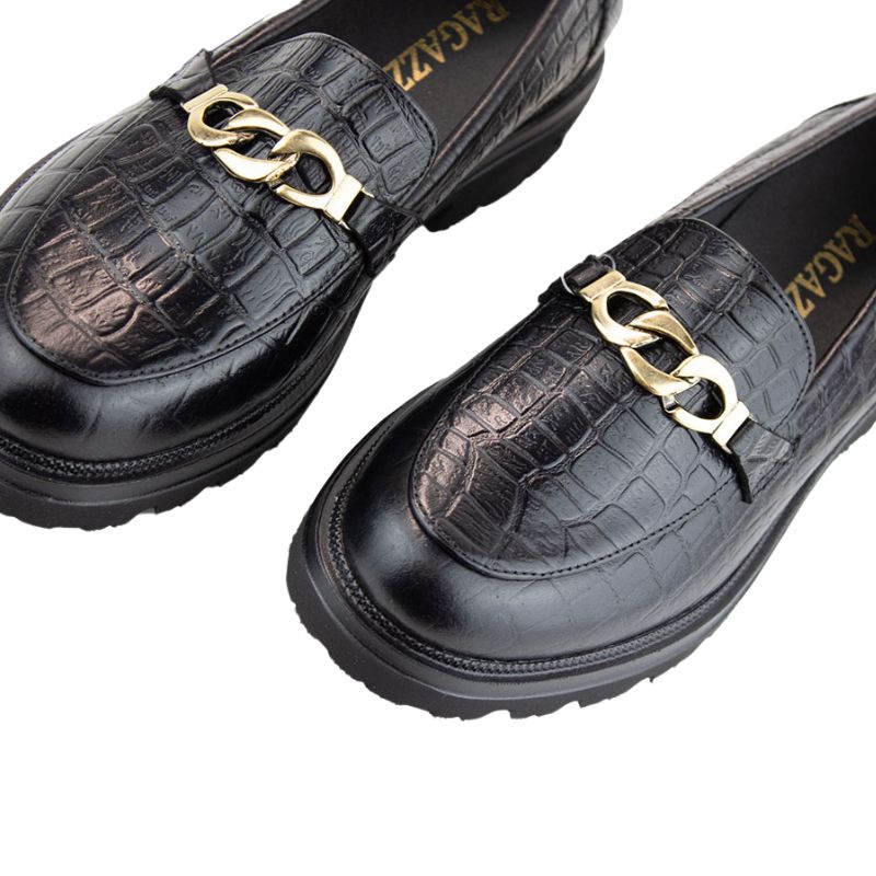 Ragazza 0158 παπούτσια σε Μαύρο Χρώμα Κροκό
