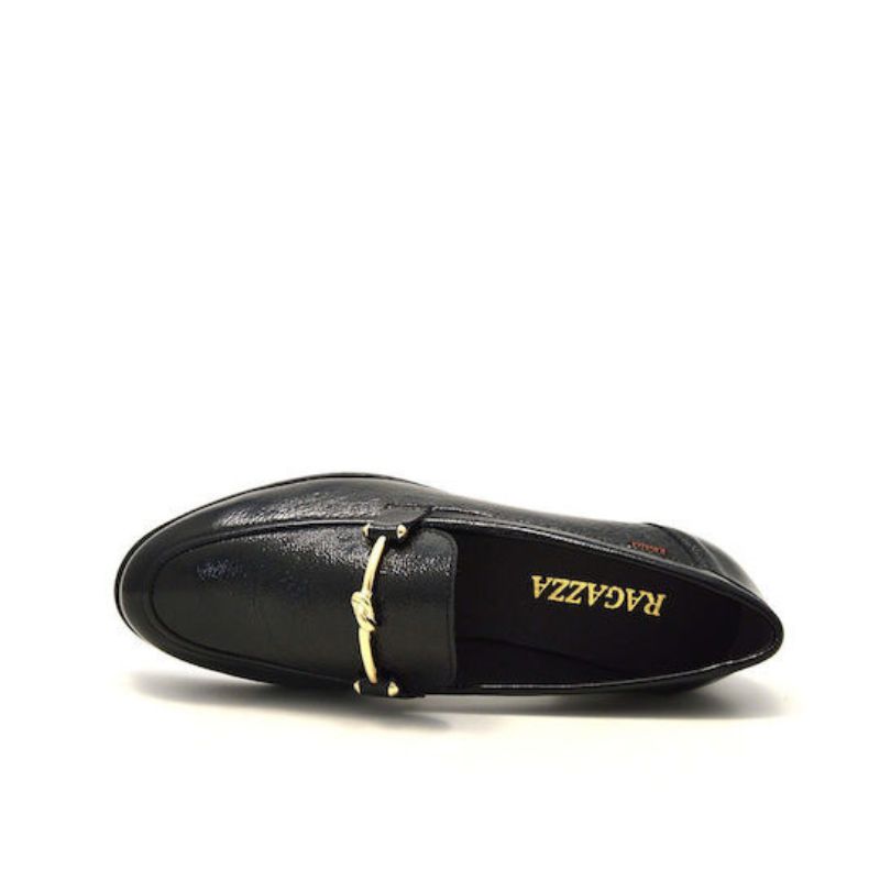 Ragazza Δερμάτινα Γυναικεία Loafers σε Μαύρο Χρώμα Λουστρίνι