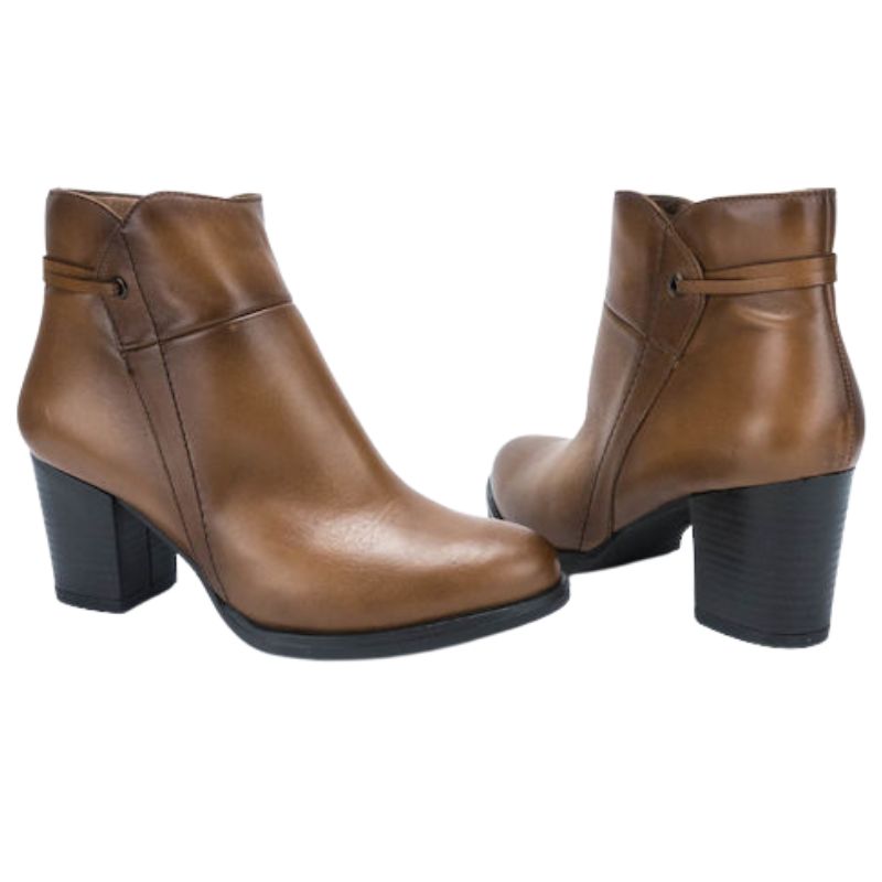 Ragazza Δερμάτινα Γυναικεία Μποτάκια Αστραγάλου με Μεσαίο Τακούνι Ταμπά