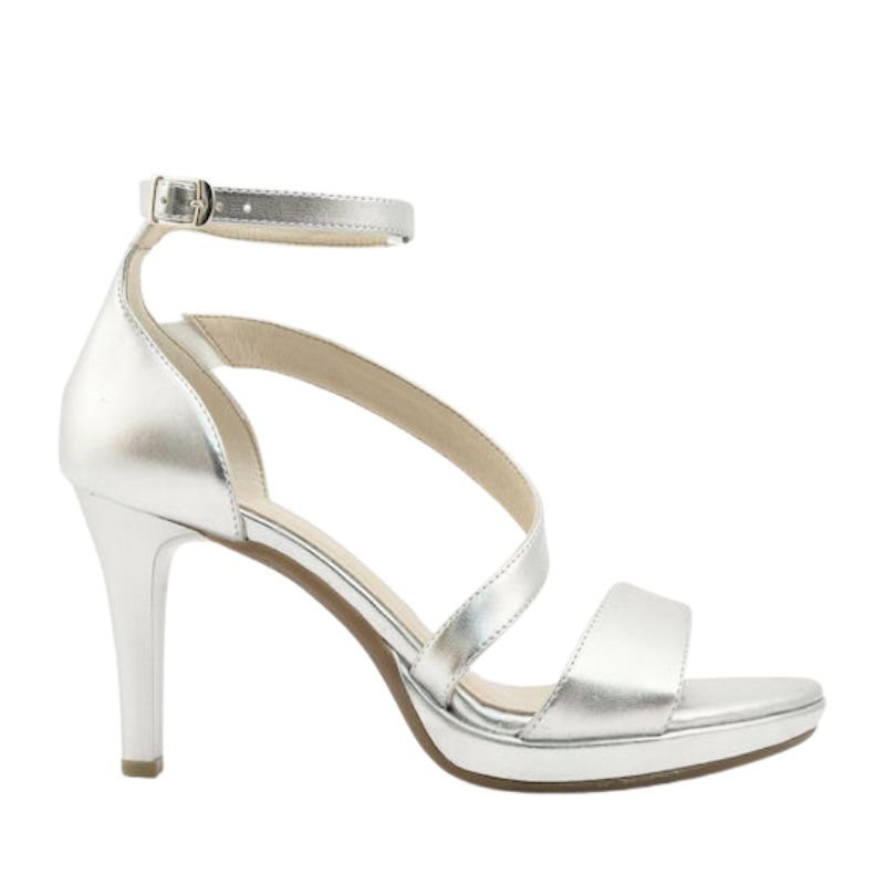 Ragazza Δερμάτινα Γυναικεία Πέδιλα με Λεπτό Ψηλό Τακούνι σε Ασημί Χρώμα