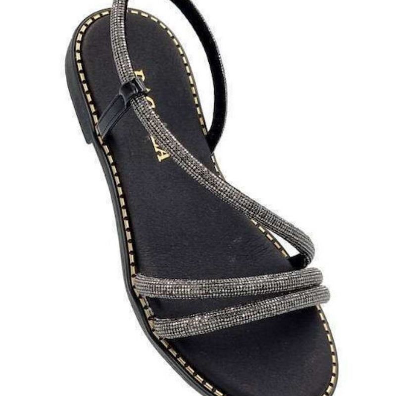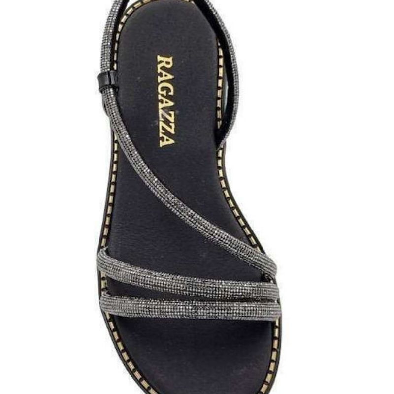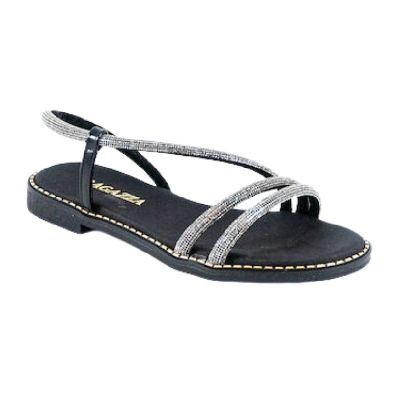 Ragazza μοντέρνα σανδάλια από δέρμα με στρας λουριά.