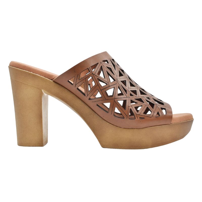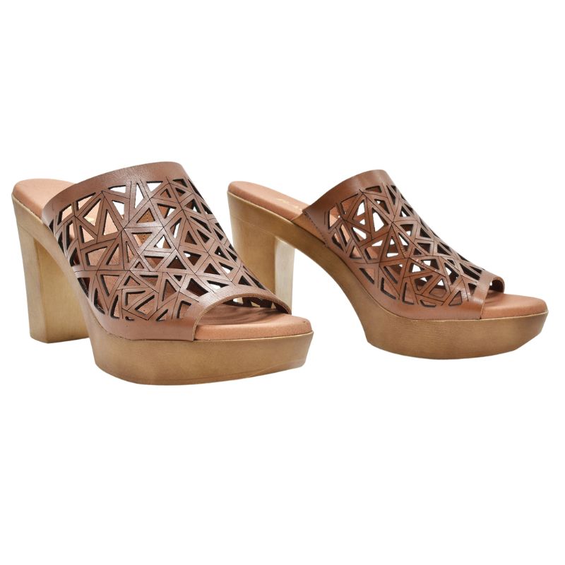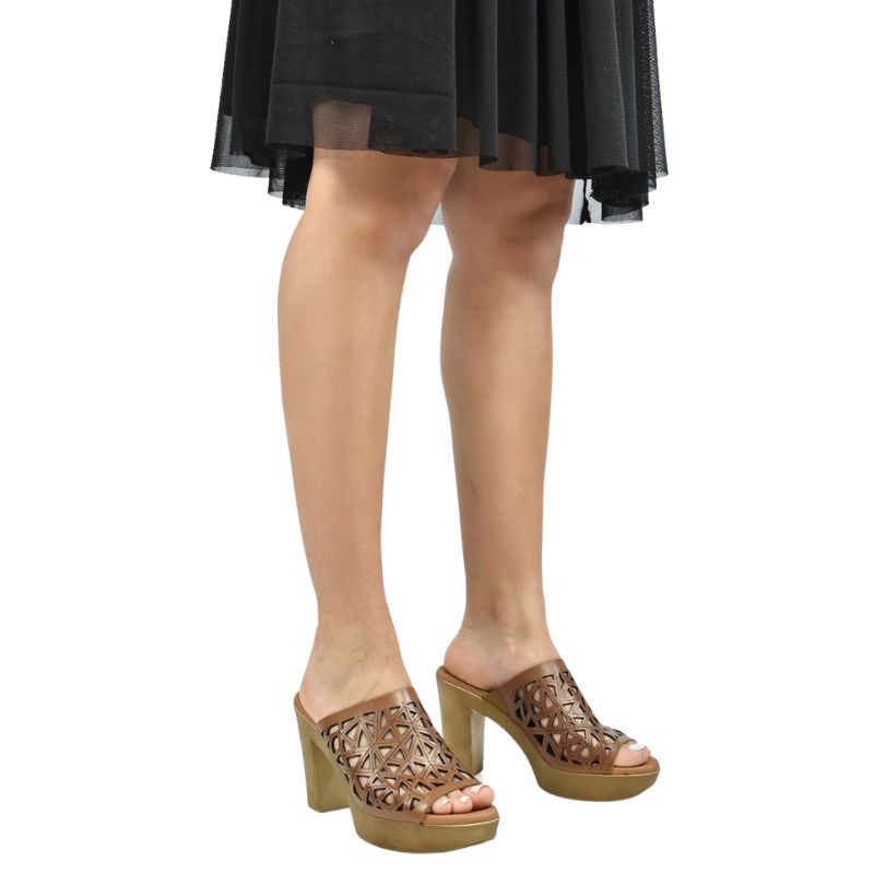 Ragazza Δερμάτινα Mules με Χοντρό Ψηλό Τακούνι σε Ταμπά Χρώμα 0333