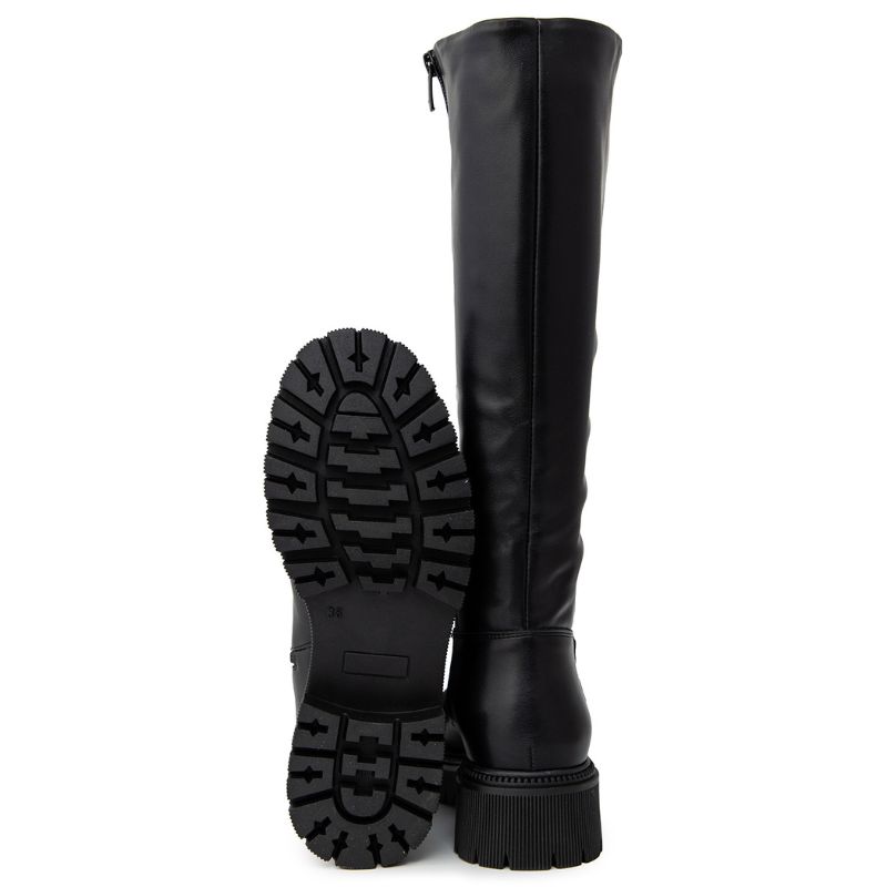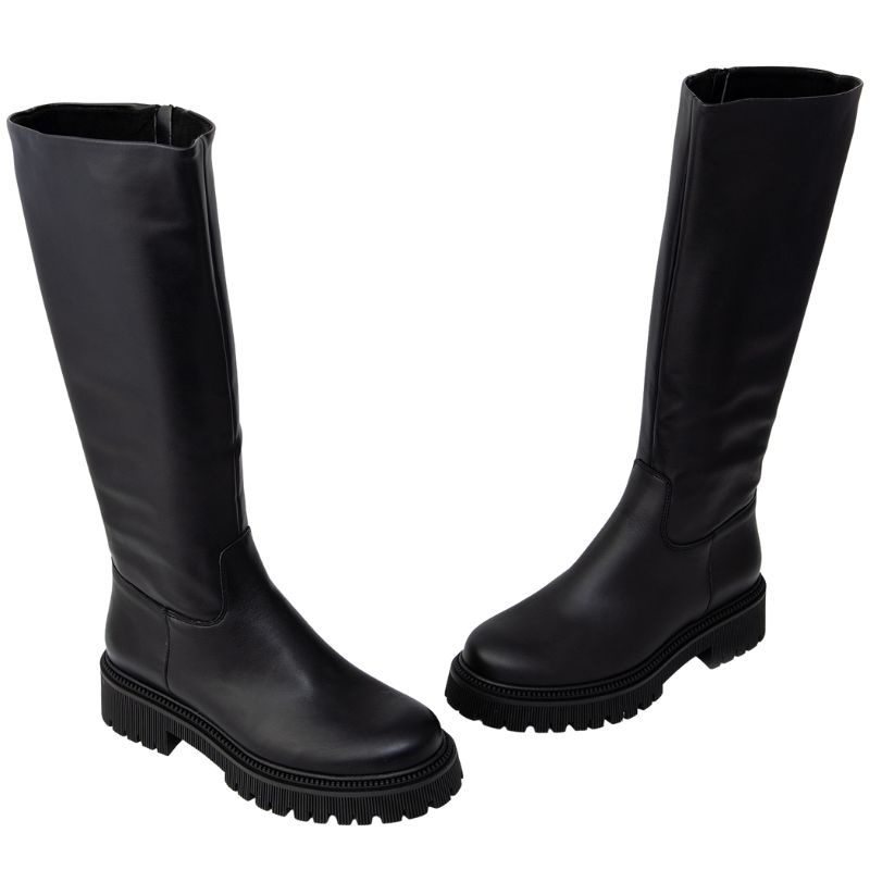 Ragazza Δερμάτινες Γυναικείες Μπότες με Χαμηλό Τακούνι Μαύρα 0299