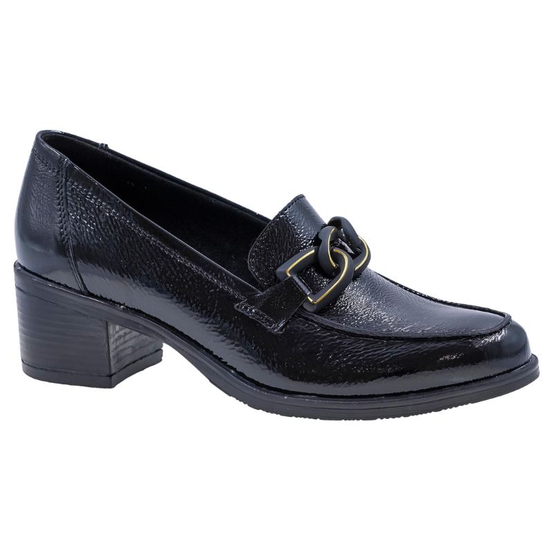 Γυναικείο παπούτσι,τύπου μοκασίνι,της ελληνικής εταιρείας RAGAZZA,από άριστης ποιότητας δέρματα. Η σόλα από γνήσια πολυουρεθάνη,μαζί με το πρωτοποριακό σύστημα DRYFLEX,προσφέρει άνετο και σταθερό βάδισμα,αποθώντας παράλληλα την υγρασία. Το ύψος του τακουνιού είναι στα 5cm. Διατίθεται σε μαύρο χρώμα. Συνδιάζεται τέλεια με παντελόνι,αλλά και με φορέμα. Το MUST-HAVE του φετινού χειμώνα!!!