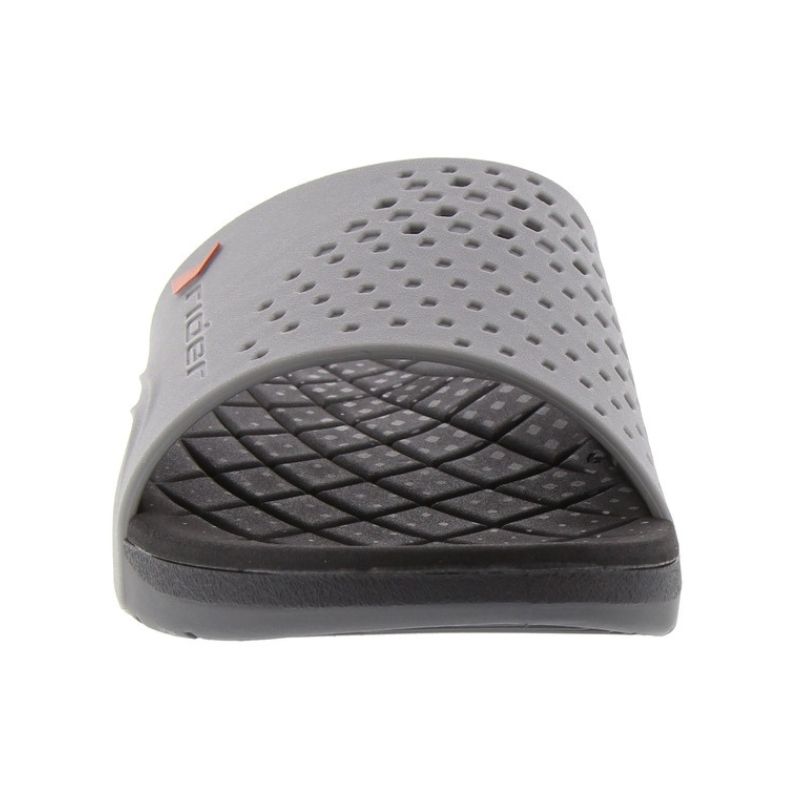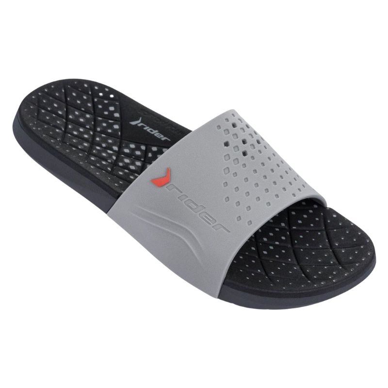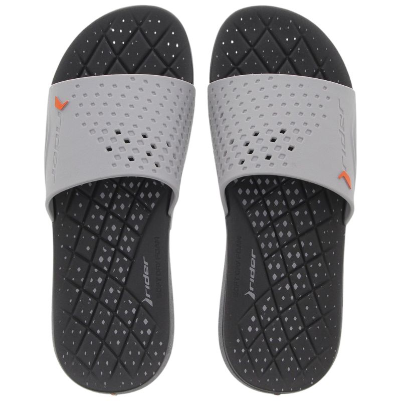 Ανακαλύψτε τις σαγιονάρες Rider 18033, το ιδανικό αξεσουάρ για τον άνδρα που αναζητά ένα αξιόπιστο παπούτσι για την παραλία, το κολυμβητήριο ή τις καλοκαιρινές του βόλτες. Κατασκευασμένες από υψηλής ποιότητας συνθετικό υλικό, διακρίνονται για τον ανατομικό τους σχεδιασμό που αγκαλιάζει το πέλμα και τη διακριτική γκρι απόχρωση με τις αθλητικές λεπτομέρειες. Είναι σχεδιασμένες για να αντέχουν στη σκληρή χρήση, προσφέροντας ταυτόχρονα την απαραίτητη ξεκούραση στα πόδια σας.