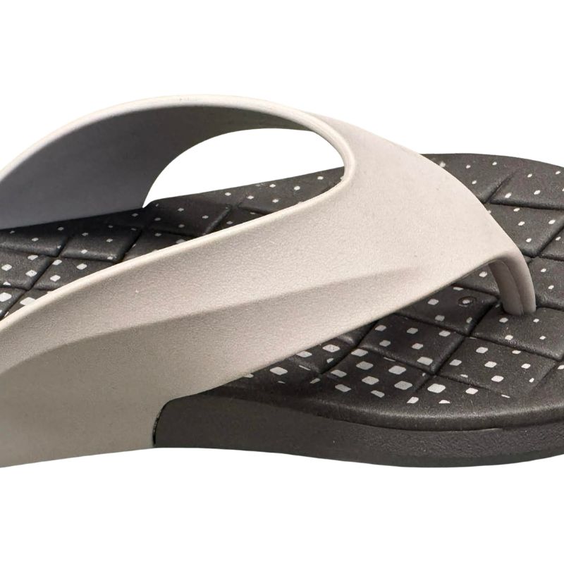 Ανακαλύψτε το μοντέλο Infinity Thong, μια σαγιονάρα που ξεχωρίζει για τον εργονομικό σχεδιασμό και την υψηλή ποιότητα κατασκευής της. Φτιαγμένες από το πρωτοποριακό υλικό Flexpand, αυτές οι σαγιονάρες είναι 100% ανακυκλώσιμες και Vegan, προσφέροντας μια αίσθηση απαλότητας που αγκαλιάζει το πόδι. Ο συνδυασμός του γκρι πάτου με τα μαύρα λουράκια προσδίδει έναν σύγχρονο, αθλητικό χαρακτήρα, κάνοντάς τες το απαραίτητο αξεσουάρ για την παραλία, το κολυμβητήριο ή τις καθημερινές σας βόλτες.