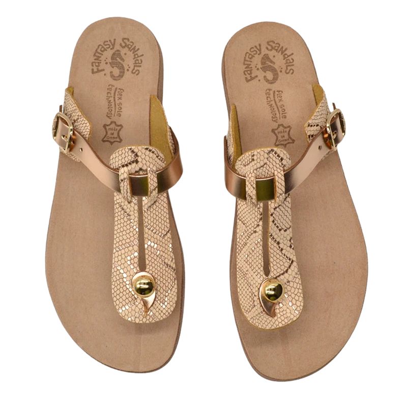 S9004 Fantasy Sandals Mirabella Δερμάτινα Γυναικεία Σανδάλια Ανατομικά Rosegold Lizard