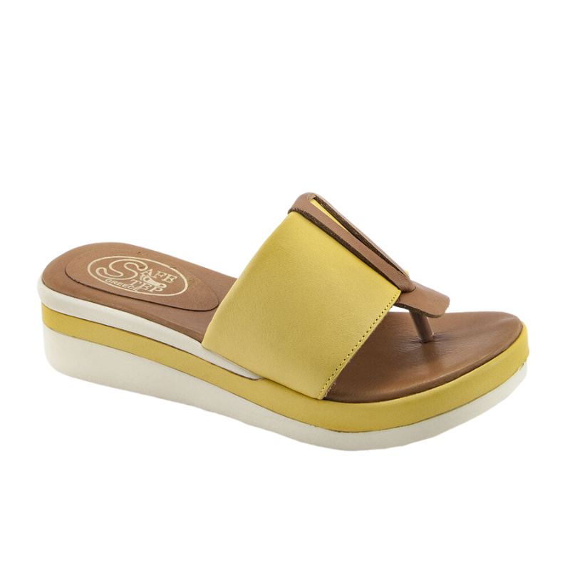 Safe Step Γυναικεία Κίτρινη Δερμάτινη Ανατομική Σαγιονάρα/Πλατφόρμα