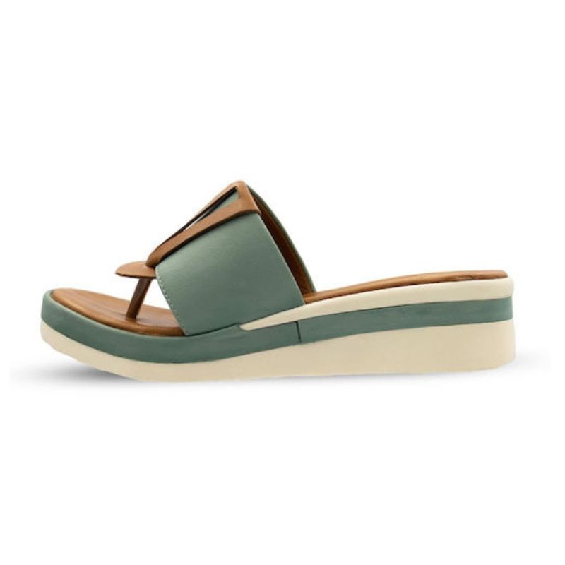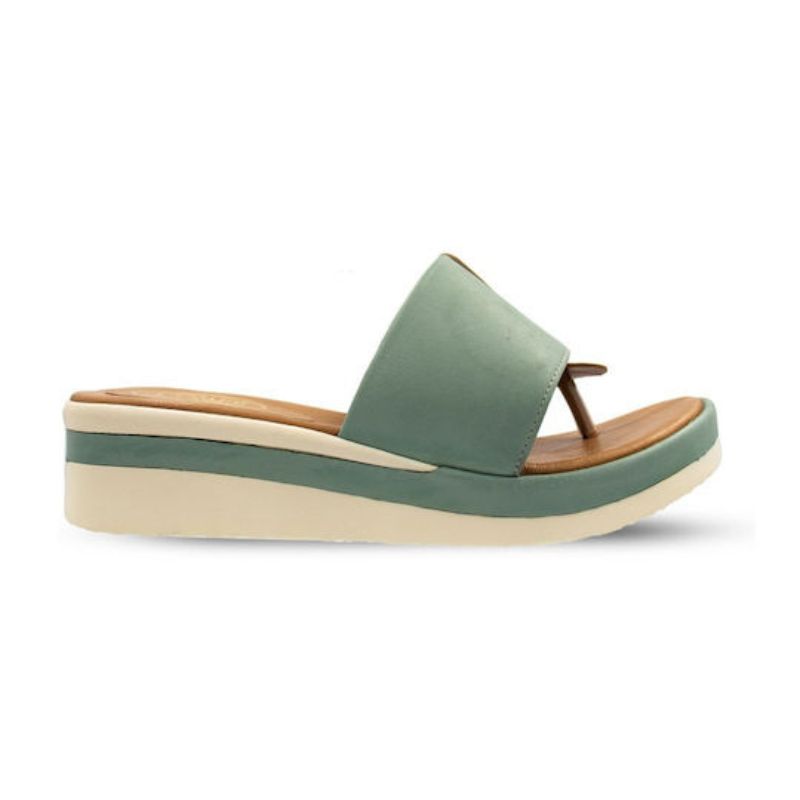 Safe Step Γυναικεία Πράσινη Δερμάτινη Ανατομική Σαγιονάρα/Πλατφόρμα