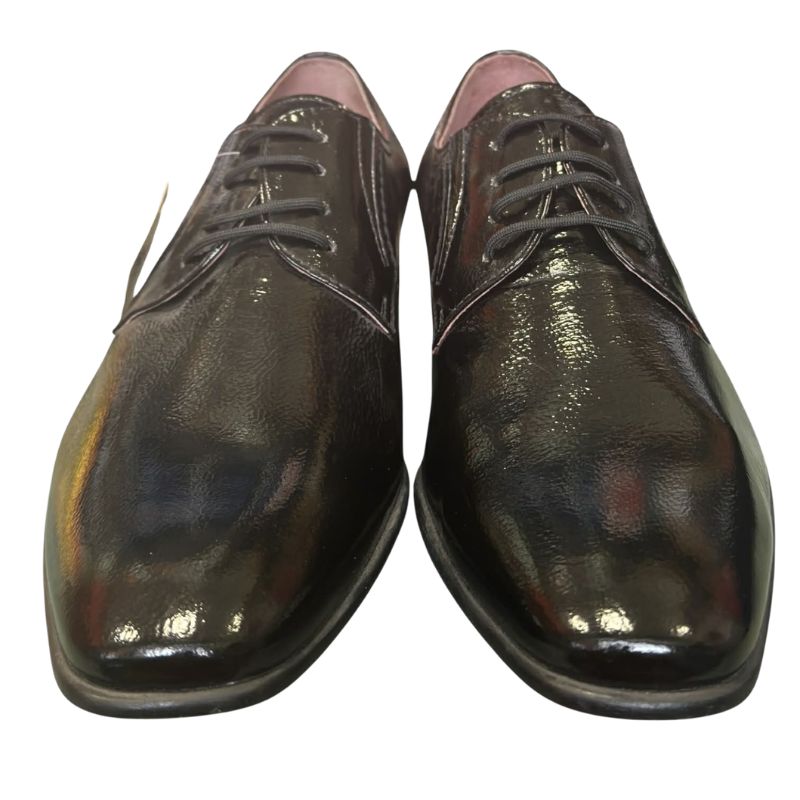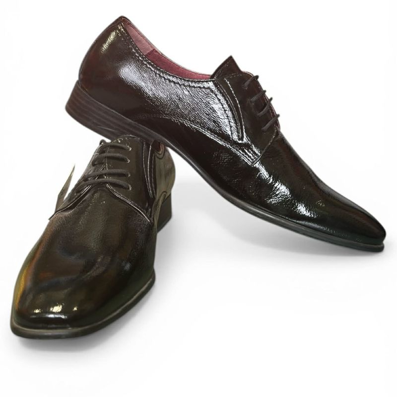 High-Gloss Finish: Το μαύρο λουστρίνι προσφέρει μια καθαρή, καθρεπτίζουσα λάμψη που αναβαθμίζει άμεσα κάθε κοστούμι.