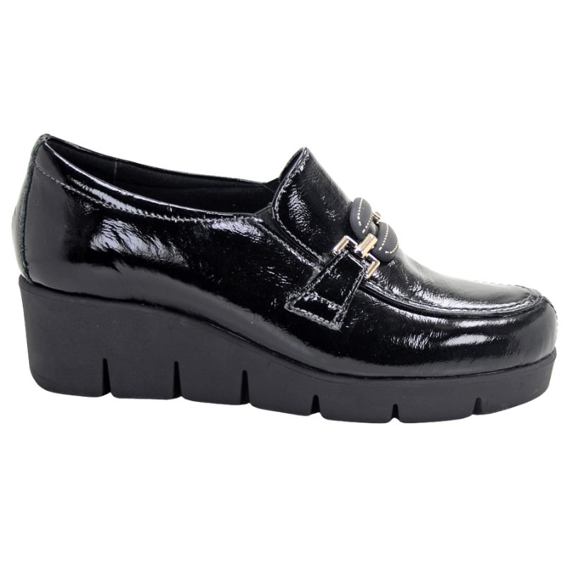 Το μαύρο μοκασίνι είναι το βασικό κομμάτι κάθε γυναικείας γκαρνταρόμπας, και το Softies 7468 στην έκδοση μαύρου λουστρινιού είναι η καλύτερη εκδοχή του. Συνδυάζει την απόλυτη κομψότητα της λάμψης με την κορυφαία άνεση που χαρακτηρίζει την τεχνολογία Softies, δημιουργώντας ένα παπούτσι που θα φοράτε από το πρωί έως το βράδυ.