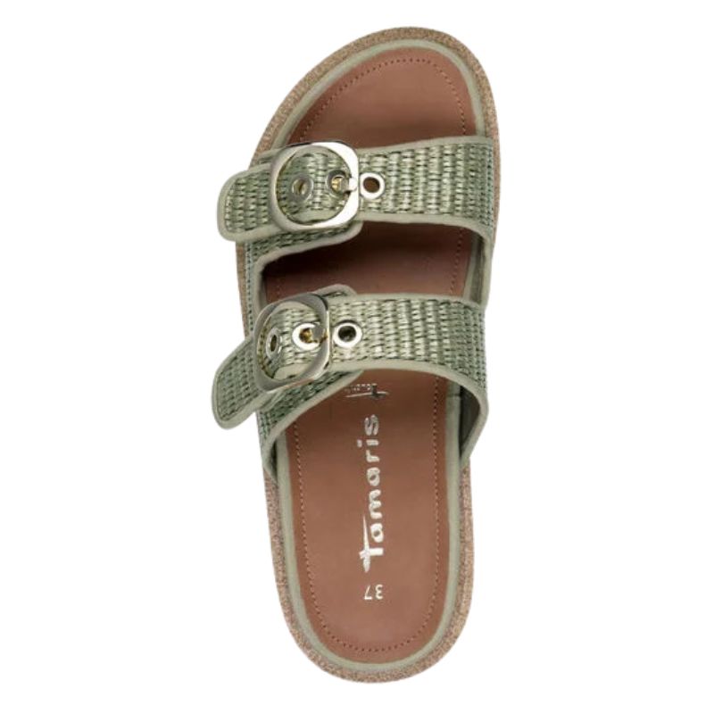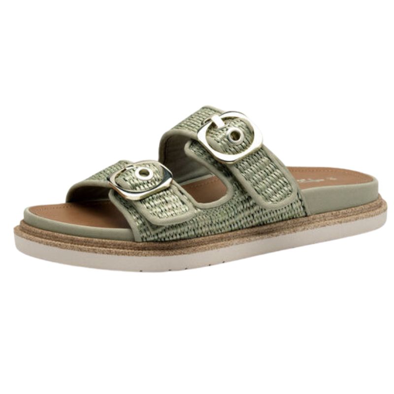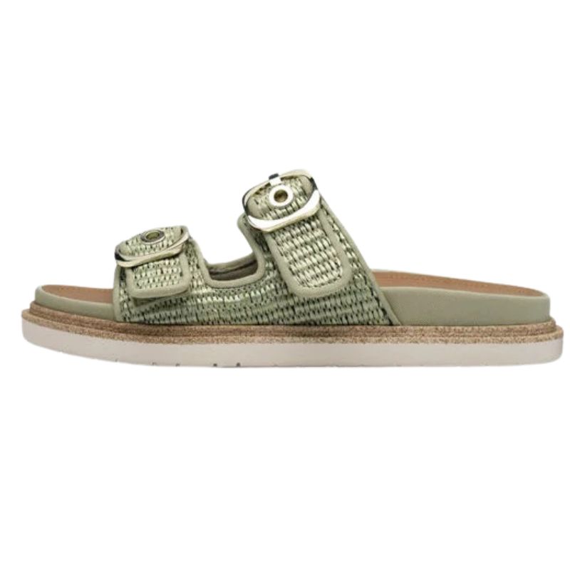 Ανακαλύψτε τη χαλαρωτική ελαφρότητα αυτού του κομψού μουλαριού από υψηλής ποιότητας ύφασμα, ιδανικό για τις ηλιόλουστες μέρες του χρόνου. Η casual, μοντέρνα εμφάνισή του σε απαλούς πράσινους τόνους και μπεζ πινελιές συμπληρώνεται από δύο κομψούς ιμάντες με αγκράφες και υφαντό σχέδιο. Η επίπεδη, ανάγλυφη σόλα εξασφαλίζει μέγιστη άνεση, ενώ μπορείτε να απολαύσετε τον ελεύθερο χρόνο σας, τις διακοπές σας ή μια επίσκεψη στην παραλία με στυλ. Ένας ιδανικός σύντροφος που εμπλουτίζει κάθε βήμα της καλοκαιρινής σας γκαρνταρόμπας.