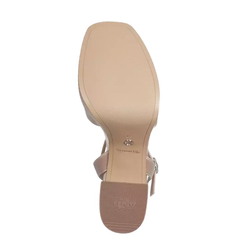 Το γυναικείο πέδιλο TAMARIS της τρέχουσας συλλογής εντυπωσιάζει με το τακούνι του στα 9,5 cm και το ύψος του άξονα στα 6 cm. Το μείγμα υλικών από ύφασμα και συνθετικό εξασφαλίζει άνετη εφαρμογή. Η μύτη του παπουτσιού είναι karrèe και ο τύπος τακουνιού είναι block heel. Με το κλείσιμο με κούμπωμα, το παπούτσι είναι εύκολο να φορεθεί. Το σανδάλι είναι τέλειο για γυναίκες που εκτιμούν την άνεση και το στυλ.