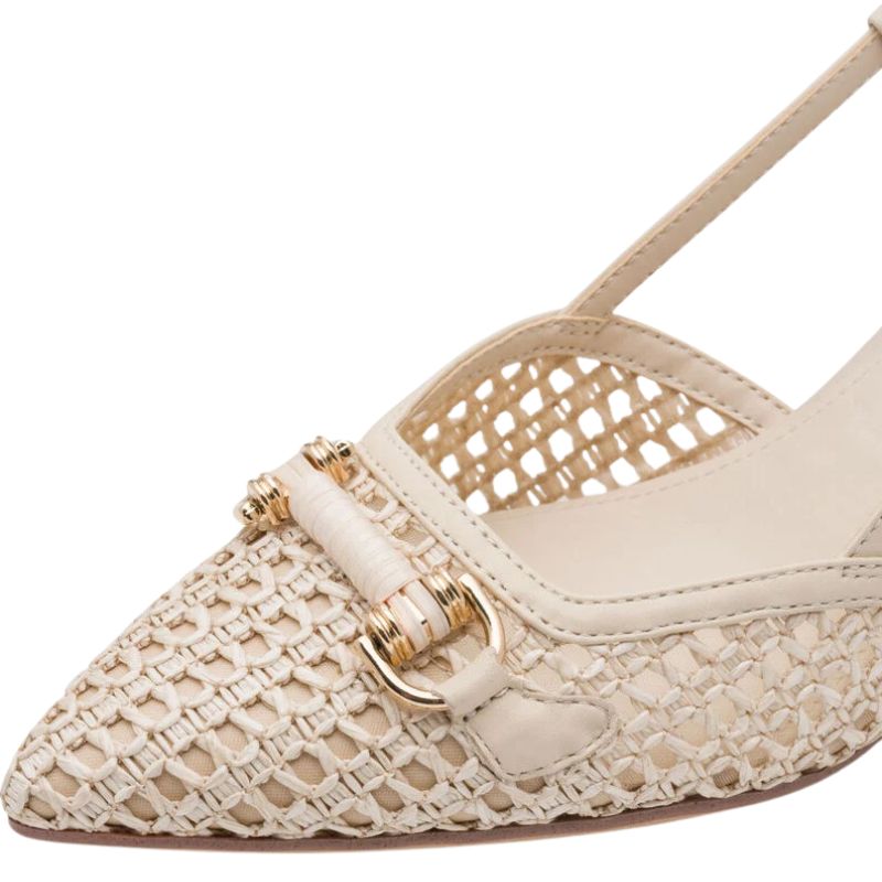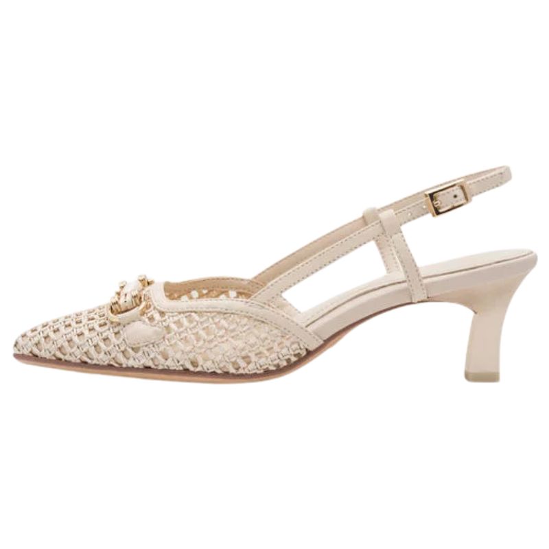 Ανακαλύψτε τη διαχρονική κομψότητα με τις Ivory γόβες της Tamaris. Με εκλεπτυσμένο στιλέτο τακούνι 5,5 cm, αυτά τα slingback παπούτσια σας προσφέρουν το ιδανικό ύψος και στυλ χωρίς να θυσιάζετε την άνεση. Ο πολυτελής συνδυασμός δέρματος και υφάσματος αγκαλιάζει απαλά το πόδι σας, ενώ η μυτερή τους μύτη χαρίζει μια αίσθηση επιμήκυνσης στη σιλουέτα, κάνοντάς σας να αισθάνεστε μοναδική σε κάθε σας εμφάνιση.