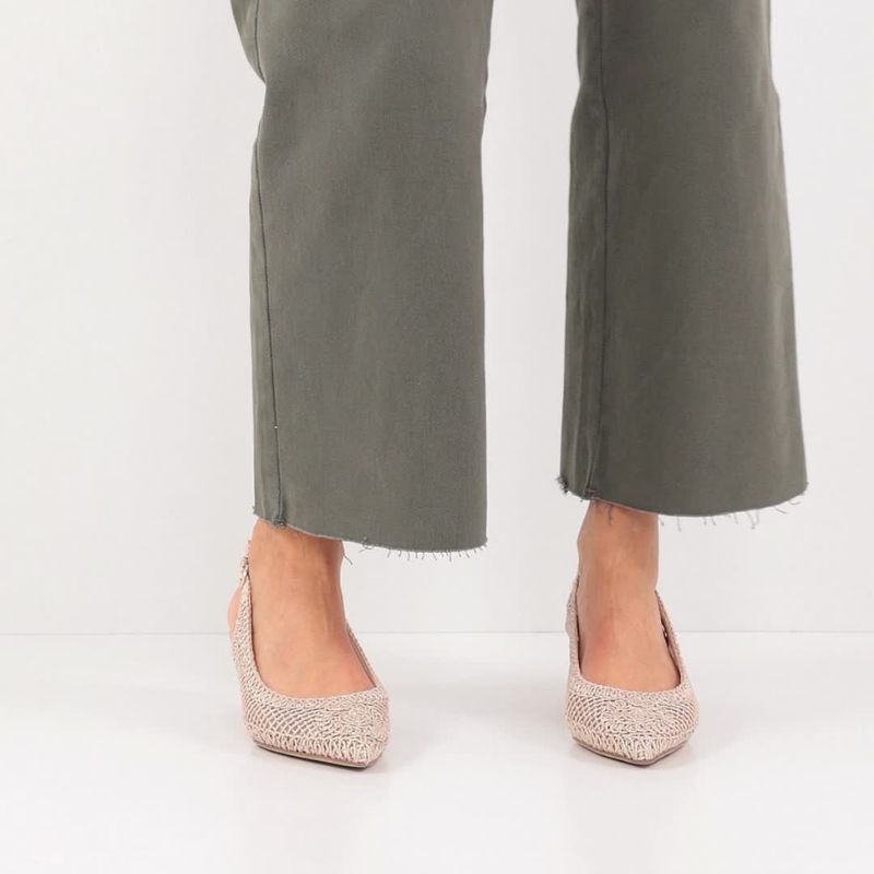 Unique Glam Design: Το υφασμάτινο επάνω μέρος σε light gold τόνους προσδίδει μια αριστοκρατική λάμψη, ενώ το χαμηλό κόψιμο (6.5 cm λαιμός) αναδεικνύει το κουντεπιέ και επιμηκύνει τη σιλουέτα.