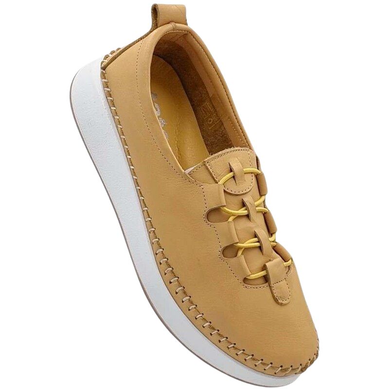 Tatoo Δερμάτινα Γυναικεία Μοκασίνια σε κίτρινο χρώμα