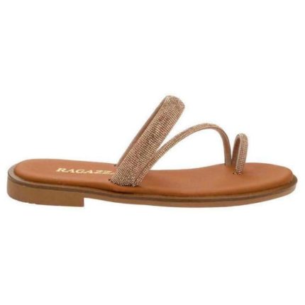 Ragazza Δερμάτινα Πέδιλα με Στρας Χαλκός