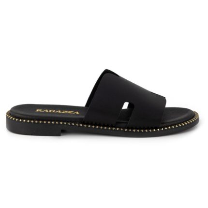 Ragazza Δερμάτινα Γυναικεία Σανδάλια σε Μαύρο Χρώμα 01041
