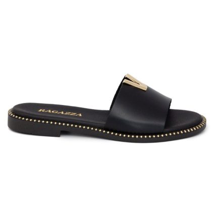 Ragazza Δερμάτινα Γυναικεία Σανδάλια σε Μαύρο Χρώμα