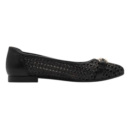Ανακαλύψτε τον τέλειο σύντροφο για κομψές περιστάσεις με αυτές τις κομψές μπαλαρίνες, που λάμπουν σε κομψό μαύρο και ζεστό καφέ. Ο μοντέρνος σχεδιασμός τους από ένα λεπτό μείγμα υλικών και η επίπεδη, λεία σόλα εξασφαλίζουν απόλυτη άνεση, ενώ οι χρυσές αγκράφες και ο υφαντός σχεδιασμός προσθέτουν μια πινελιά κομψότητας. Είτε στο γραφείο είτε κατά τη διάρκεια δραστηριοτήτων αναψυχής, αυτές οι μπαλαρίνες προσαρμόζονται ευέλικτα σε οποιοδήποτε ντύσιμο και δίνουν στην εμφάνισή σας κάτι συγκεκριμένο. Απολαύστε τη μέρα – με ευκολία και στυλ!