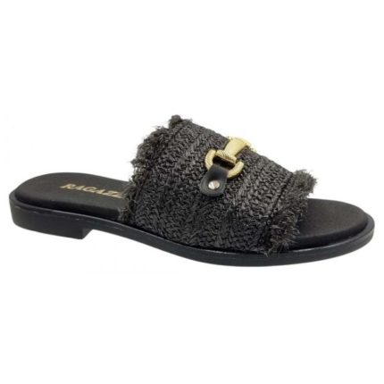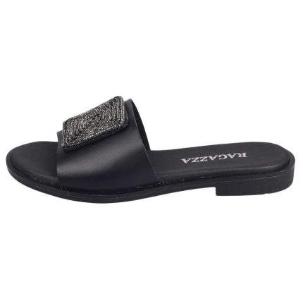 Γυναικείες Ανατομικές Δερμάτινες Παντόφλες Ragazza 01014 σε μαύρο χρώμα
