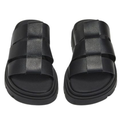Ragazza Δερμάτινα Γυναικεία Σανδάλια Flatforms σε Μαύρο Χρώμα 0850